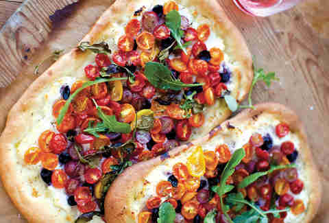 Fresh greens with a bit of vinaigrette or lemon juice are so good on pizza they’re sure to win over the salad agnostics in the crowd. When added to a pizza that’s just been pulled off the grill, the greens wilt from the residual heat, yet maintain a bit of welcome crispness.