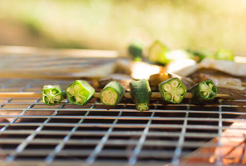 When grilled lightly, okra becomes a sensory grab bag, with charred bits, crispy edges, and a creamy interior. That’s what makes it perfect for grilled pizza. While they’re intensely snackable right off the grill (especially with a squeeze of lemon juice or a vinaigrette), a sprinkle of roughly chopped or sliced okra adds a lot of textural interest and fresh flavor to your pies.